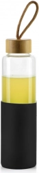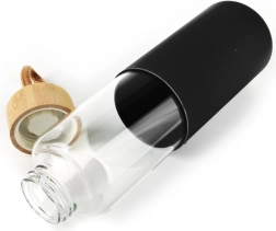 Pratica bottiglia in vetro da 600 ml con tappo in bambù e passante in tessuto, ideale per l’idratazione quotidiana. Realizzata in resistente vetro borosilicato, è adatta a bevande calde e fredde. Il rivestimento protettivo in silicone nero migliora la presa e protegge dagli urti, mentre gli anelli di tenuta in silicone nel tappo garantiscono un’ottima ermeticità.