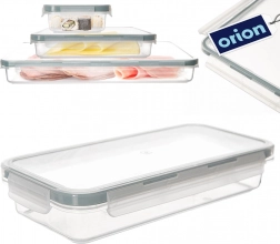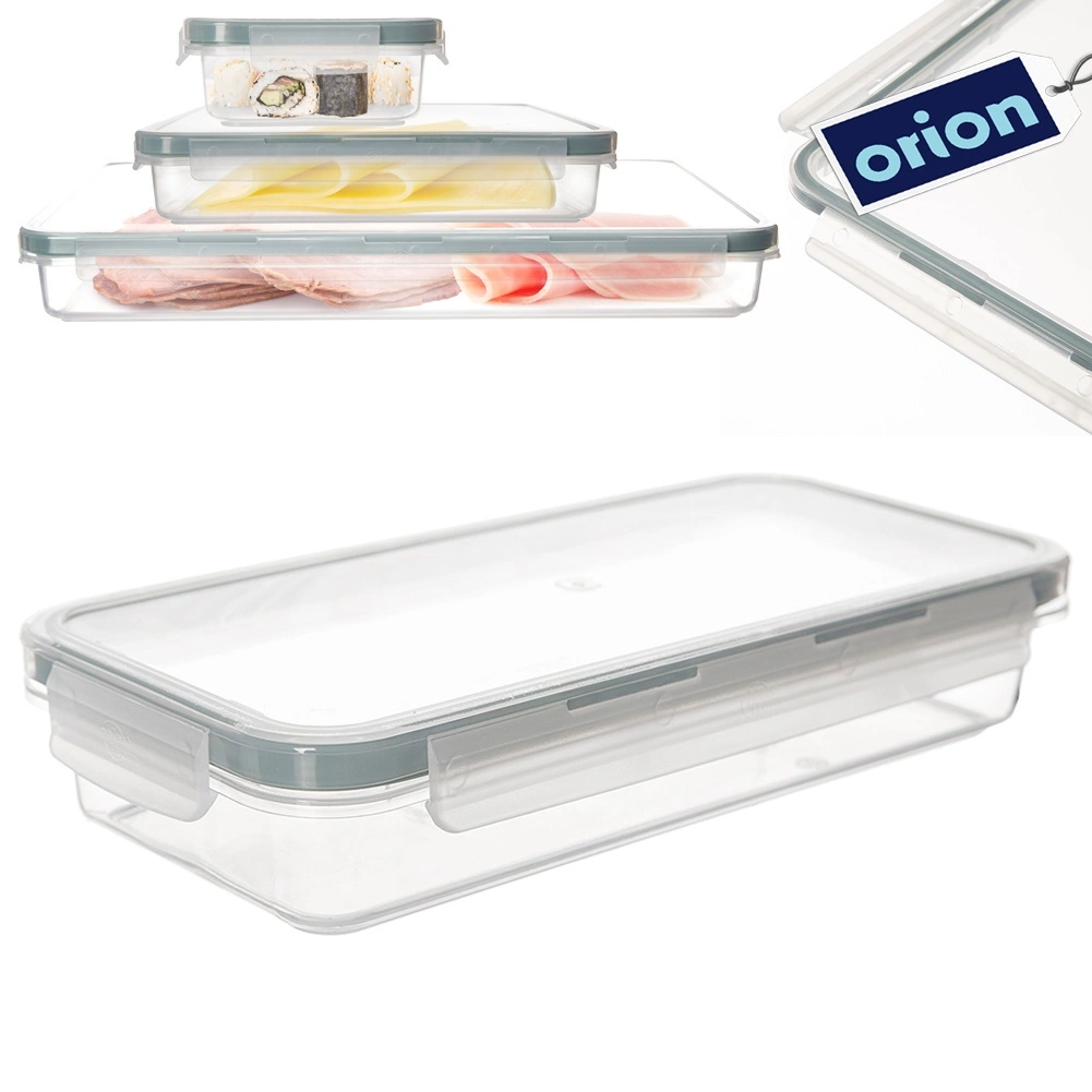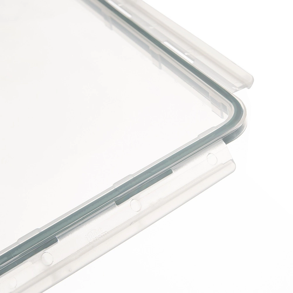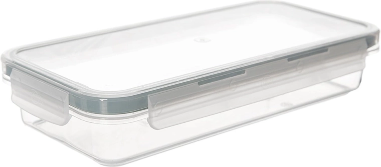 Contenitore alimentare basso e universale in plastica resistente e trasparente, perfetto per la conservazione, il trasporto e l’organizzazione dei pasti. Grazie al coperchio robusto con 4 clip e alla guarnizione in silicone di qualità, il contenuto è protetto da aria e umidità, così gli alimenti restano freschi più a lungo.