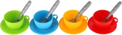 - Teiera, 4 tazzine, 4 piattini, 4 cucchiaini (combinazione di colori)