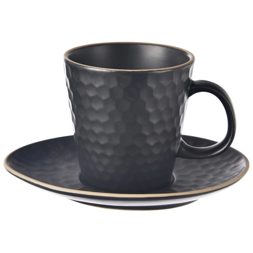 Goditi il tuo caffè o tè preferito con l’elegante tazza TEA TIME. Il gres nero opaco con un sottile bordo a contrasto e la superficie strutturata a nido d’ape conferiscono alla tazza e al piattino un aspetto moderno e senza tempo. Grazie al manico confortevole la tazza si impugna bene e il piattino raccoglie eventuali gocce.