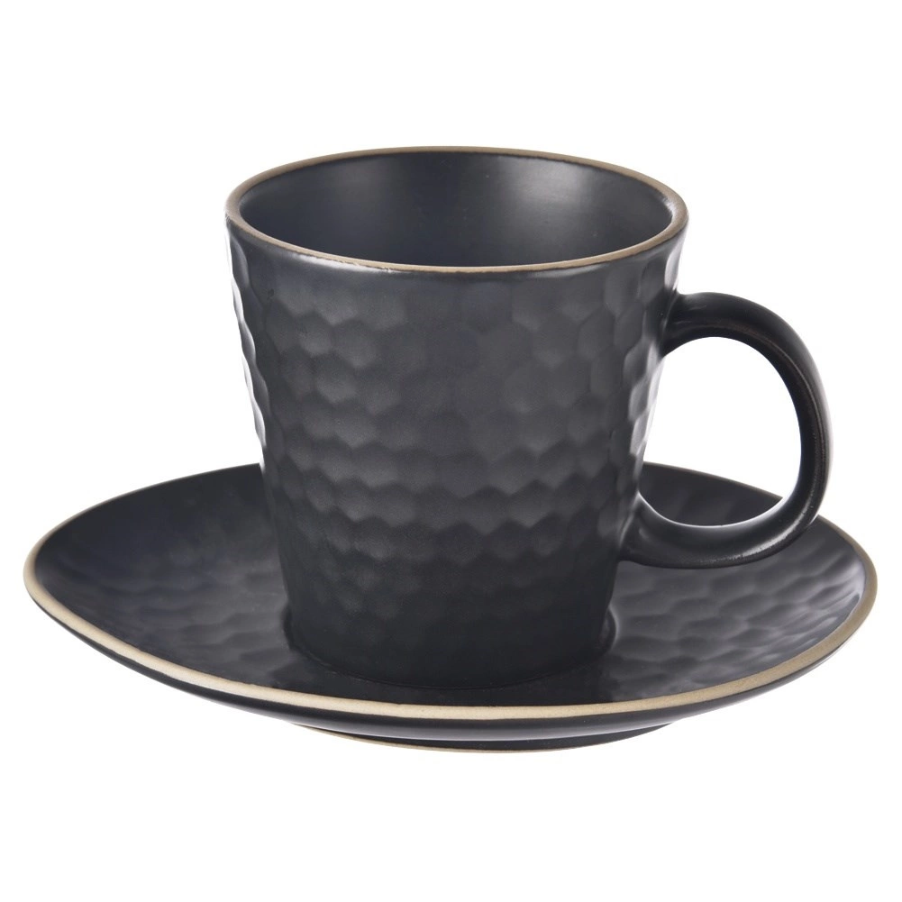 Il motivo in rilievo ispirato al favo dona alla tazza e al piattino un carattere deciso e un look moderno che risalta in ogni cucina e caffetteria.