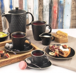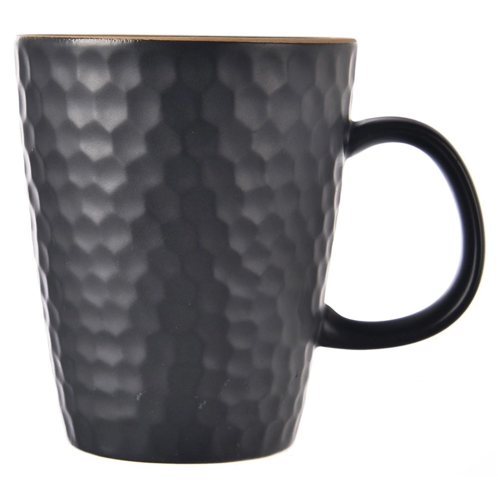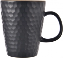 Scoprite una tazza pratica e senza tempo della collezione TEA TIME, che completerà perfettamente la vostra dotazione domestica. La smaltatura nera opaca con motivo a rilievo a favo dona alla tazza un aspetto moderno e allo stesso tempo migliora la presa. Grazie alla capacità di 420 ml potrete gustare al meglio il vostro caffè, tè o cacao caldo.