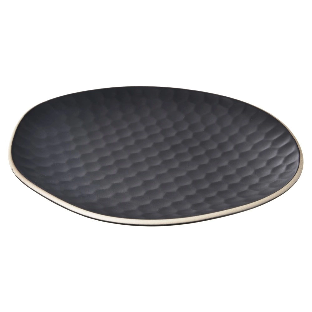 La finitura opaca, leggermente martellata/a “nido d’ape” dona al piatto un look moderno e una migliore presa. Il bordo chiaro a contrasto valorizza le pietanze servite.