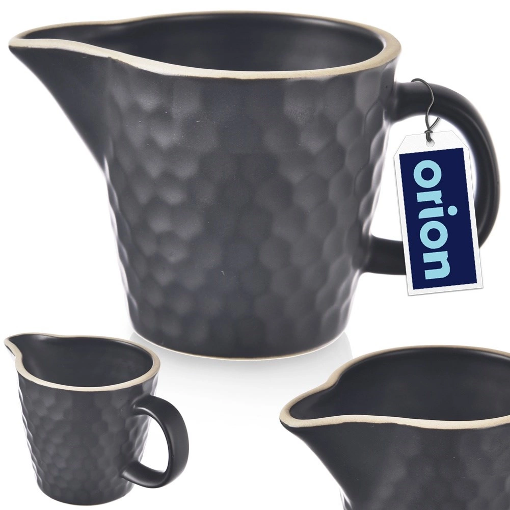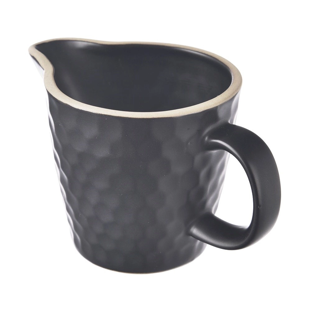 Elegante lattiera in ceramica della collezione TEA TIME in colore nero con capacità di 100 ml, ideale per servire latte, panna o salse. Dispone di un beccuccio pratico, un manico comodo e una resistente struttura in gres con texture a nido d’ape. Lavabile in lavastoviglie e adatta al forno a microonde.