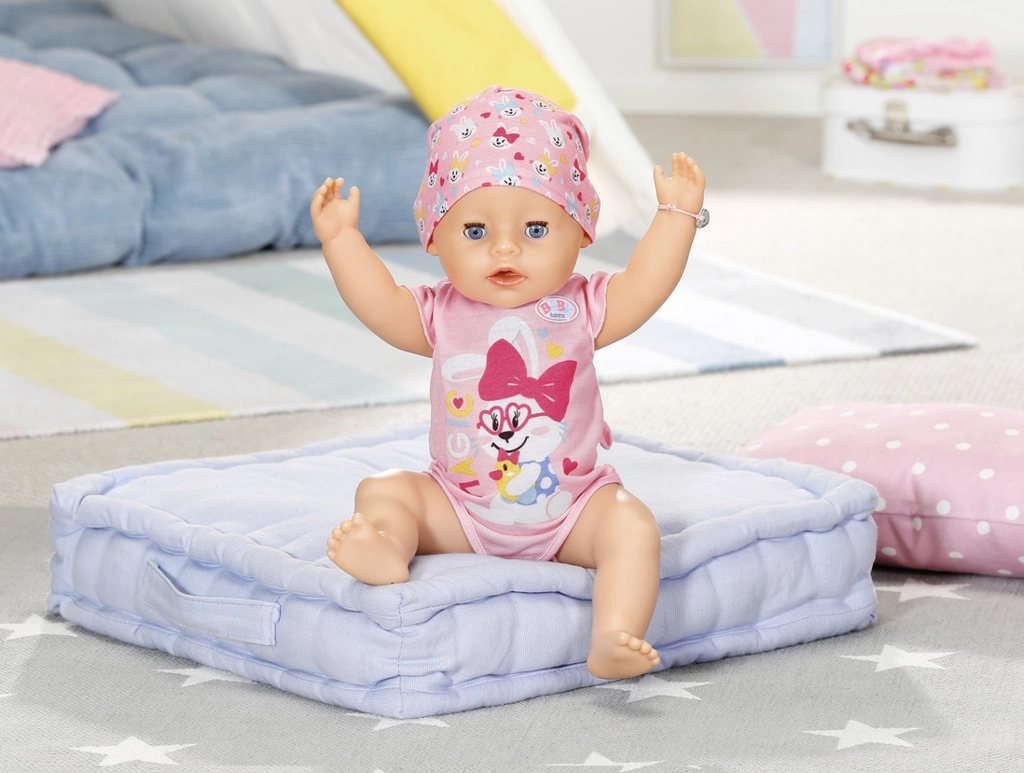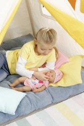 La bambola beve acqua, mangia la pappina, fa pipì nel pannolino e sul vasino, sa fare la cacca e versa vere lacrime. Perfetta per esercitare la cura e i rituali quotidiani.