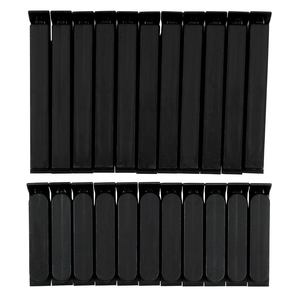La confezione include 11 clip più lunghe e 11 più corte. Le più lunghe per sacchetti più larghi, le più corte per confezioni piccole di spezie o snack.