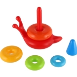 Piramide impilabile colorata è un giocattolo ideale per lo sviluppo delle abilità motorie dei bambini. È composta da diversi cerchi colorati e una base sorridente a forma di lumaca.