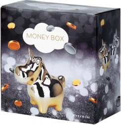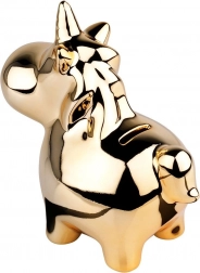 Elegante salvadanaio a forma di unicorno con brillante finitura dorata a specchio, perfetto per completare l’interior design e per risparmiare monete e banconote. Dispone di un tappo apribile sul fondo, così non serve romperlo. L’elegante realizzazione in ceramica in stile glam è ideale anche come regalo per bambini e adulti.