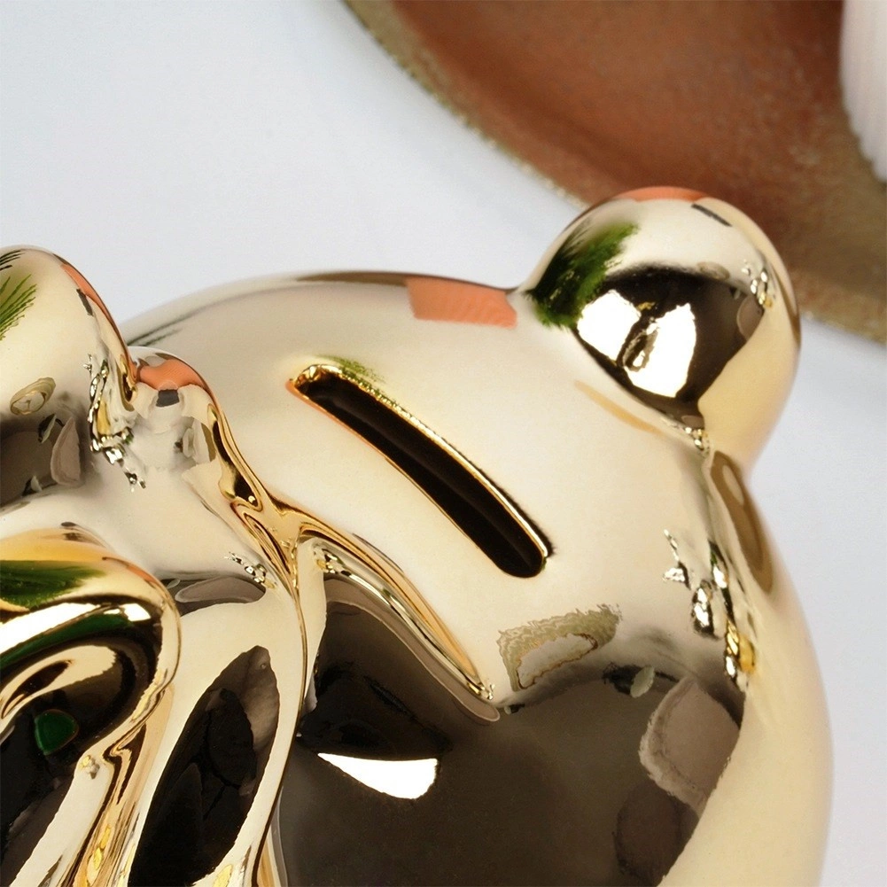 La smaltatura dorata lucida dona al salvadanaio un aspetto lussuoso e si abbina facilmente agli interni moderni in stile glamour.