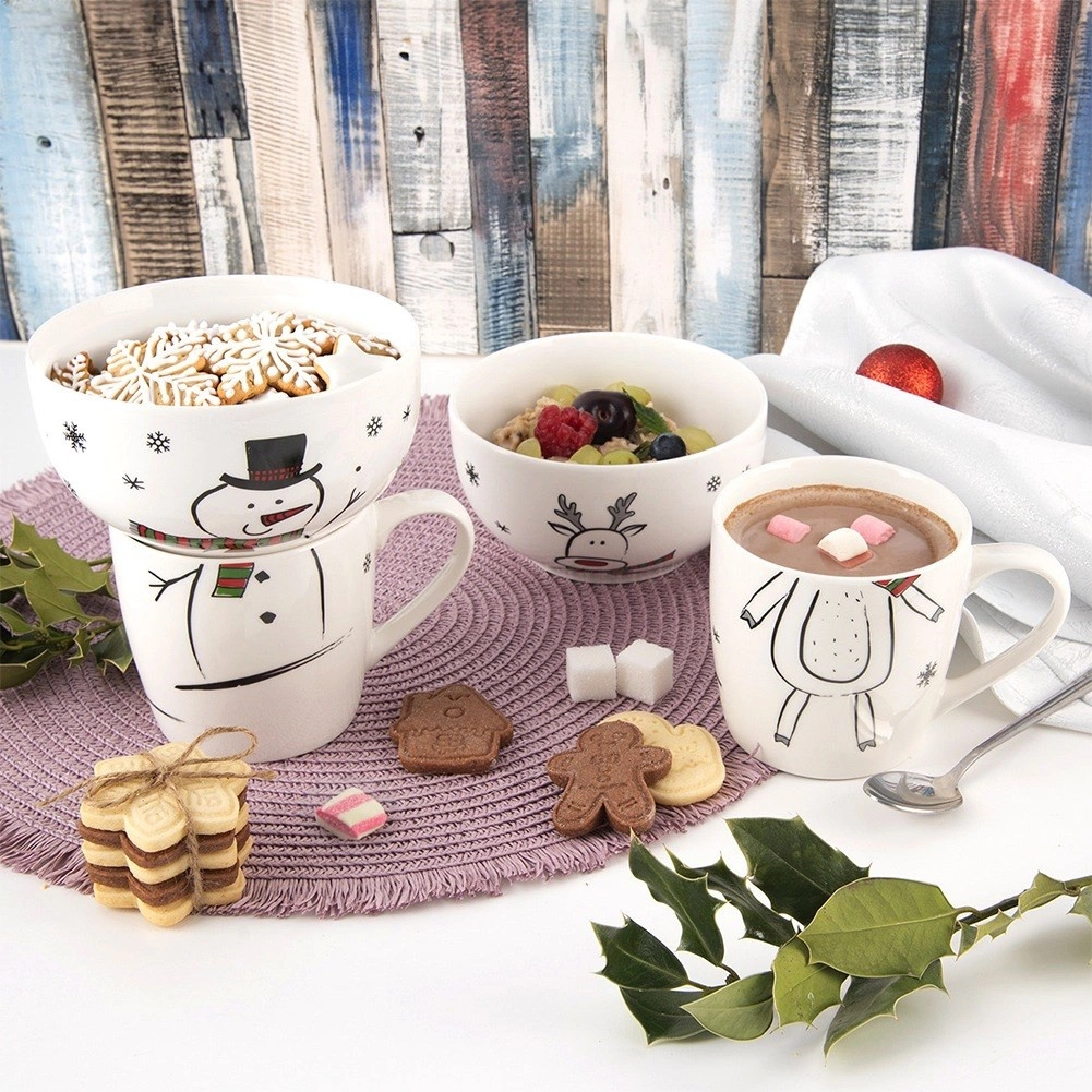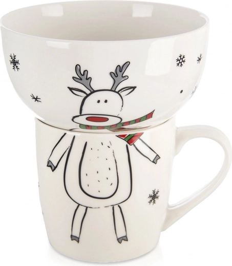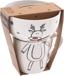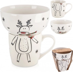 Scoprite un set pratico e stiloso per piccoli buongustai: tazza in porcellana (350 ml) e ciotola (530 ml) con un allegro motivo renna che entusiasmerà i bambini e renderà più piacevole ogni momento a tavola. Il set è perfetto per colazioni, zuppe, merende e dessert ed è adatto ai bambini dai 3 anni in su.