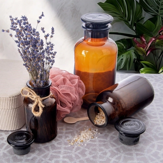 Questo barattolo retrò in vetro ambrato unisce un look senza tempo a una funzionalità pratica. Il collo largo facilita riempimento e dosaggio e il tappo in sughero aiuta a mantenere la freschezza e a impedire l’ingresso di aria e odori. Il vetro ambrato protegge efficacemente il contenuto dai raggi UV, risultando adatto a prodotti fotosensibili.