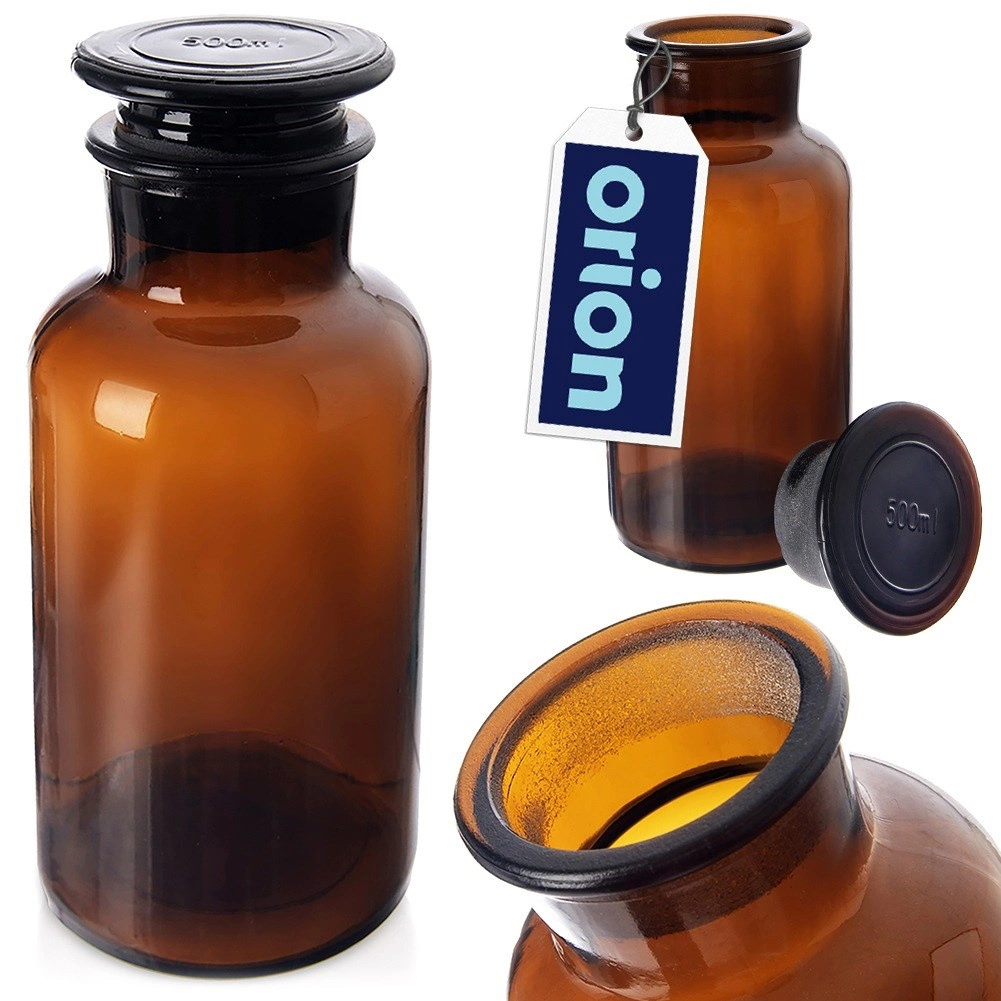 Elegante bottiglia in vetro ambrato da 500 ml con collo largo e tappo ermetico, ideale per conservare in sicurezza cosmetici, oli, erbe e infusi. Grazie al vetro scuro offre protezione dalla luce, si riempie facilmente e sigilla in modo affidabile per mantenere il contenuto fresco più a lungo.