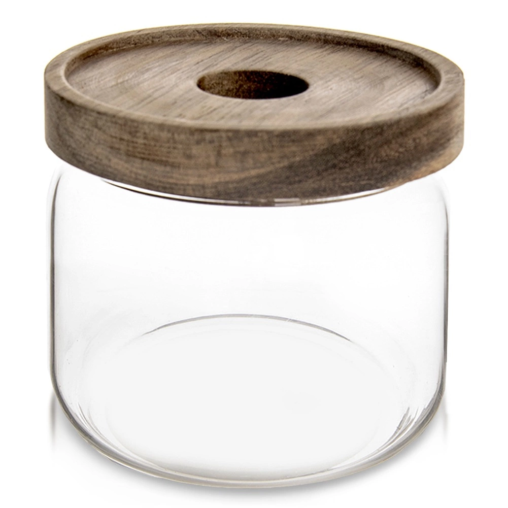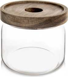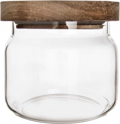 Pratico barattolo in vetro da 500 ml con coperchio in legno naturale e guarnizione in silicone che mantiene i tuoi alimenti freschi più a lungo. Ideale per caffè, frutta secca, muesli, pasta e dolci. Vetro borosilicato resistente, chiusura ermetica e contenitore trasparente per controllare facilmente il contenuto.