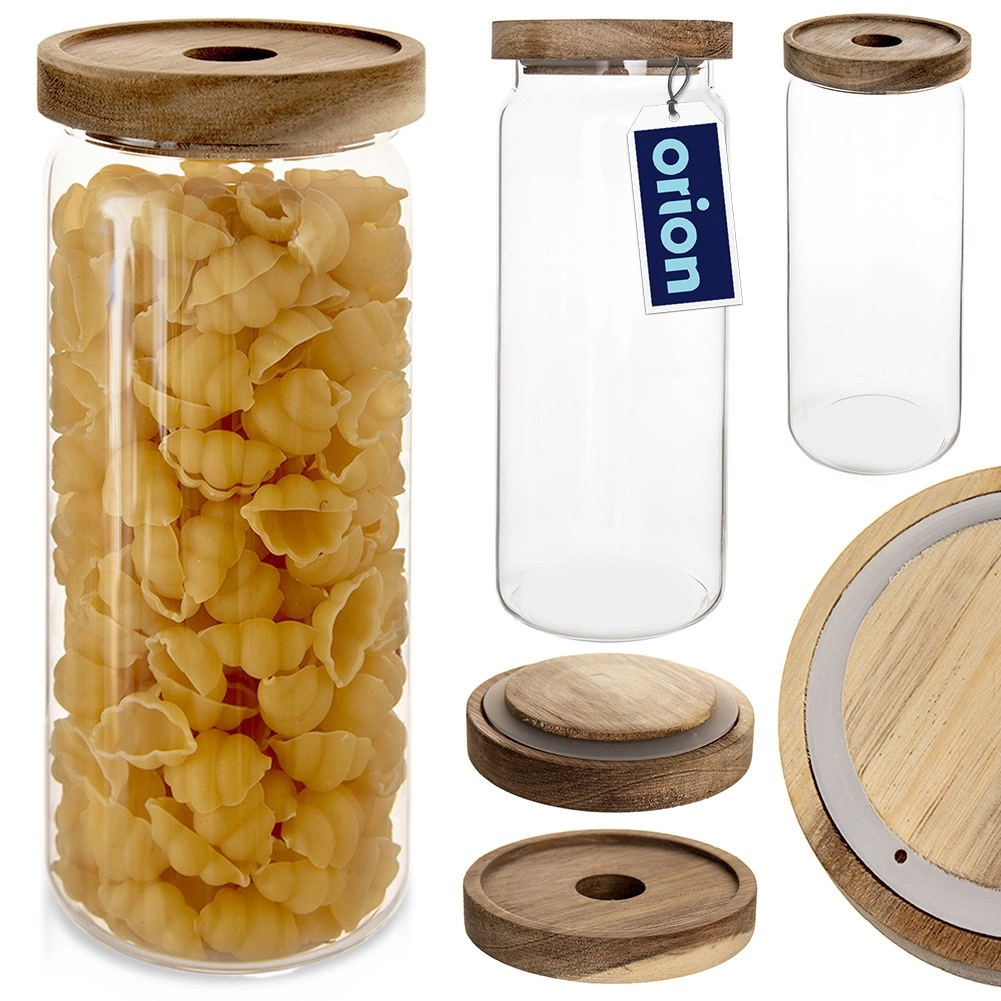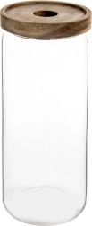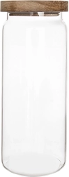 Pratico barattolo in vetro con capacità di 1,6 l, dotato di coperchio in legno e guarnizione in silicone, mantiene i tuoi alimenti più a lungo freschi e profumati. Il resistente vetro borosilicato è ideale per l’uso quotidiano, le pareti trasparenti consentono un controllo immediato del contenuto e l’elegante design valorizza ogni cucina. Il barattolo è adatto per caffè, pasta, frutta secca, muesli e altri ingredienti secchi; la parte in vetro può essere lavata in lavastoviglie.