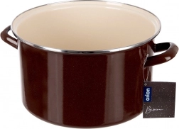 Pratica e dal design retrò, la pentola smaltata offre una generosa capacità di 11,5 l, diametro 32 cm e altezza 17 cm: perfetta per zuppe, salse e stufati. Lo smalto esterno marrone con interno beige e bordo in acciaio inox garantisce resistenza e facilità di pulizia, mentre due manici solidi offrono una presa sicura durante la manipolazione.
