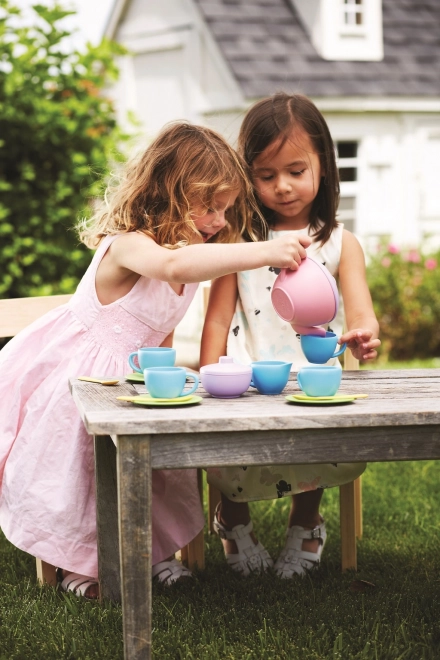 Organizza il tè perfetto con il set ecologico di Green Toys. Questo colorato servizio da tè in plastica 100% riciclata è senza BPA, PVC e ftalati, sicuro per i bambini e lavabile in lavastoviglie. Include 17 pezzi per un gioco divertente e lo sviluppo delle abilità sociali.