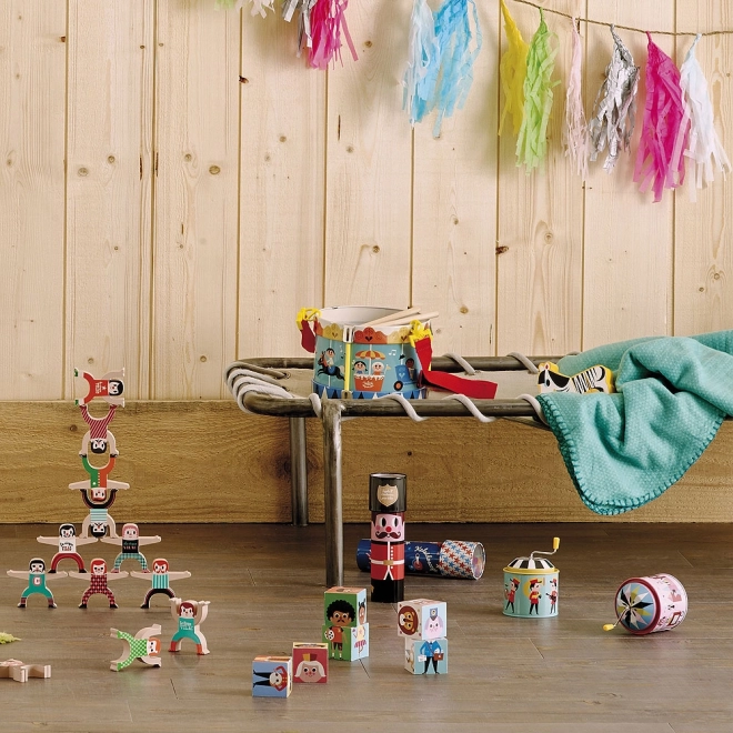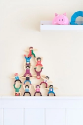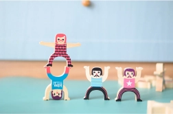 Costruite la vostra torre di acrobati e mettete alla prova destrezza e fantasia. Le figurine in legno dai colori vivaci possono essere impilate in molte posizioni stabili o audaci, rendendo questo gioco ideale per giocare insieme e imparare l’equilibrio.