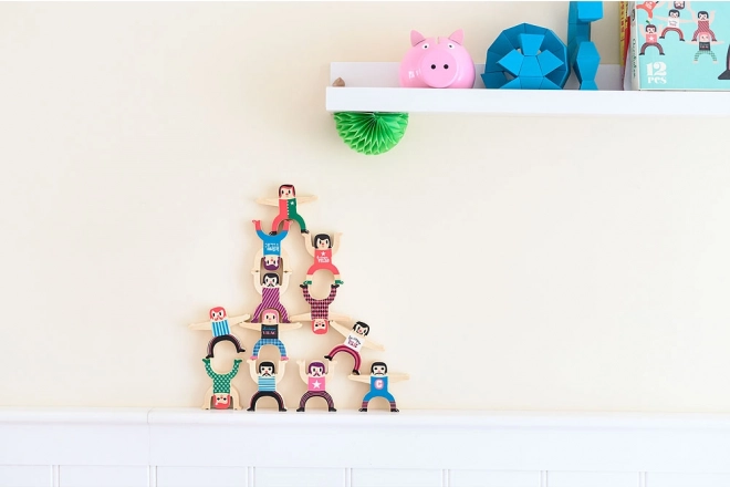 Impilando gli acrobati, i bambini allenano in modo naturale coordinazione, pazienza e pensiero logico. Gioco ideale per prescolari e scolari.