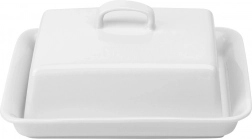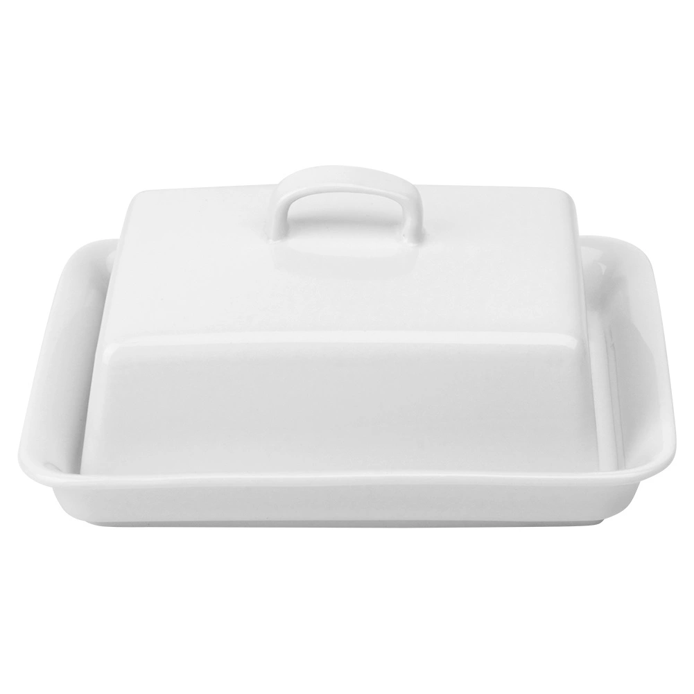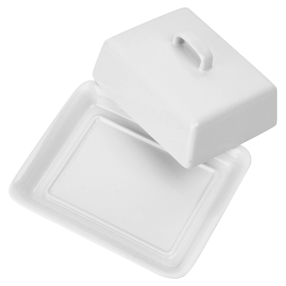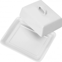 Elegante burriera in ceramica di colore bianco per conservare e servire il burro. Dimensioni compatte 16 × 13 × 7 cm, forma classica, coperchio pratico con manico e pulizia facile rendono questo pezzo un accessorio stiloso e igienico per ogni cucina.