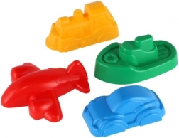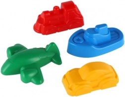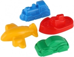 Treno, nave, aereo e auto in colori vivaci motivano i bambini a creare e a giocare nella sabbia e in acqua.