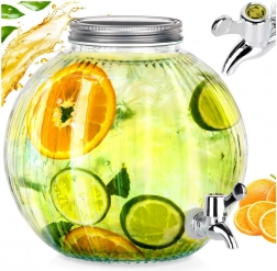 Dispenser per bevande rotondo e stiloso in vetro spesso con capacità di 5,5 l che facilita il servizio di bevande fredde per famiglia e ospiti. Grazie al rubinetto integrato, versate comodamente senza rovesciare, mentre il coperchio a vite in metallo protegge il contenuto da insetti e impurità.