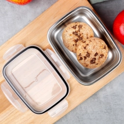 Compatto box porta alimenti in acciaio inox da 500 ml con coperchio trasparente, quattro clip e guarnizione in silicone per una chiusura perfettamente ermetica e a prova di perdita. Ideale per pranzi, spuntini e avanzi – a casa, al lavoro e in viaggio. L'acciaio inox resistente mantiene meglio la temperatura e il coperchio consente una rapida verifica del contenuto.