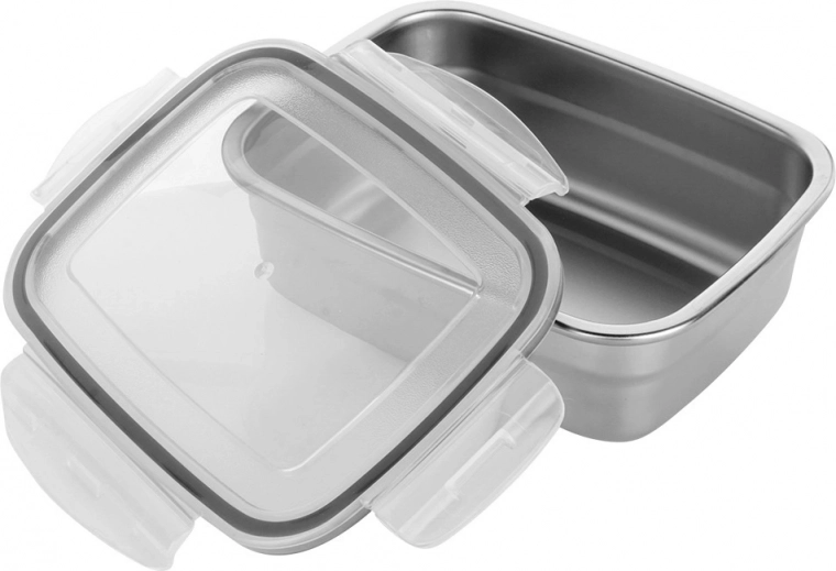 Il coperchio trasparente con guarnizione in gomma e 4 clip robuste garantisce una chiusura affidabile senza perdite. La ciotola in acciaio inox mantiene meglio la temperatura desiderata dei piatti – caldi o freddi – ed è resistente a odori e macchie. Il box è comodamente lavabile in lavastoviglie.