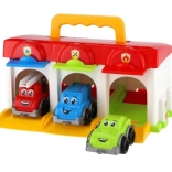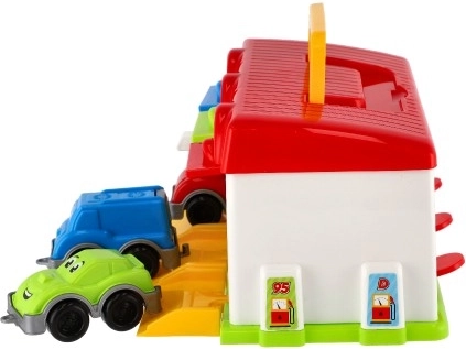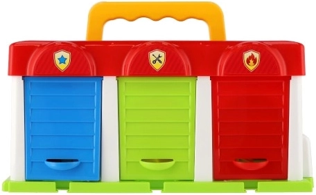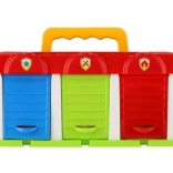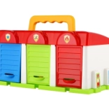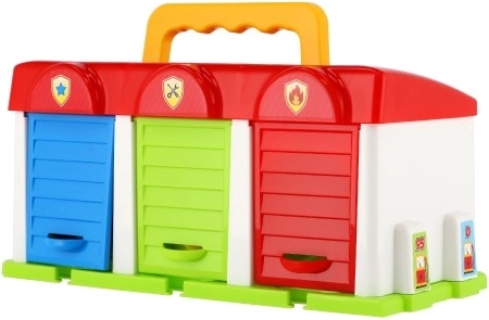Questo garage in plastica colorata è ideale per ogni piccolo appassionato di auto. Offre spazio di stoccaggio per tre auto, incluse nel set: camion dei pompieri, auto privata e furgone. Ogni macchina ha il proprio ingresso nel garage, garantendo facile ingresso e uscita. Il garage supporta il gioco immaginativo e sviluppa le capacità motorie dei bambini.