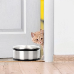 Questo fermoporta in acciaio inox, pesante e compatto, è ideale per la casa, l’ufficio e gli spazi commerciali. La forma rotonda e il peso bilanciato garantiscono stabilità, mentre gli elementi in gomma proteggono porta e pavimento da danni e smorzano gli urti. Si utilizza liberamente – senza montaggio, fori o colle.