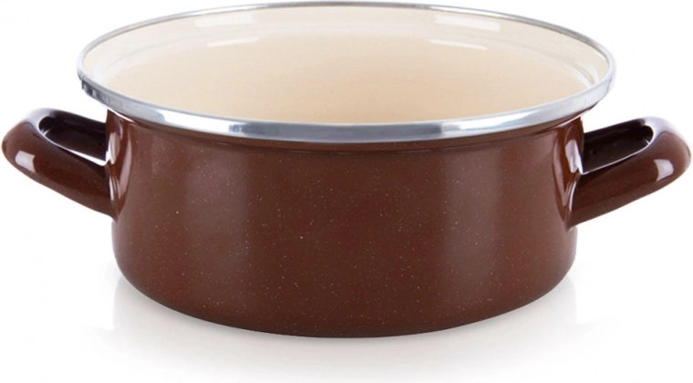 Elegante pentola in stile retrò della collezione Brown che combina la resistenza dello smalto con un design senza tempo. Esterno e manici in colore marrone, interno in smalto color crema, bordo superiore in acciaio inox per una maggiore durata. Grazie alla distribuzione uniforme del calore è perfetta per zuppe, salse e stufati.