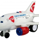 Realistico aereo giocattolo per bambini con licenza ČSA che entusiasmerà i piccoli piloti con annunci autentici del capitano e dell’assistente di volo, effetti luminosi e un semplice meccanismo a retrocarica. Giocattolo ideale per i bambini che amano gli aerei e vogliono vivere decollo, volo e atterraggio come in un vero aeromobile.