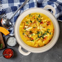 Il popolare design retrò si unisce a una struttura resistente in acciaio smaltato, sicura per la salute e delicata per chi soffre di allergie. La pentola è perfetta per zuppe, salse e stufati e, grazie all’aspetto elegante, è ideale anche per servire con stile direttamente in tavola.