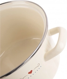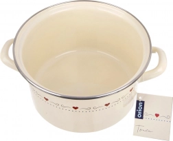 Elegante pentola smaltata TONCA con capacità di 4 l e diametro di 22 cm, in colore crema con delicato motivo a cuoricini, ideale per la cottura e la stufatura quotidiane. Dispone di manici ergonomici robusti, bordo in acciaio inox ed è adatta a tutti i tipi di piani cottura, inclusa l’induzione e anche al forno. Per una manutenzione semplice, può essere lavata in lavastoviglie.