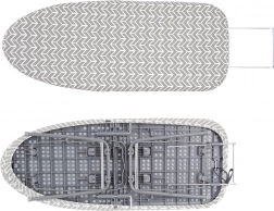 Il copriasse in 100% cotone con imbottitura in feltro da 5 mm assicura uno scorrimento fluido del ferro e una distribuzione uniforme del calore. Il copriasse è removibile e lavabile fino a 30 °C; la stiratura è consigliata fino a max 180 °C. Il carico massimo dell’asse è di 5 kg.