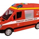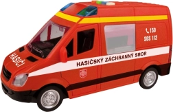 Diventa un piccolo eroe con questo giocattolo dettagliato: furgone dei pompieri a retrocarica con effetti luminosi e frasi realistiche in ceco dell’equipaggio e della centrale operativa. Il modello in scala 1:16 offre divertimento grazie al meccanismo a retrocarica e al suono della sirena. Batterie incluse nella confezione.