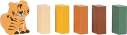 Mattoncini colorati, telaio stabile, due martelletti e una figurina di tigre: tutto in legno 100% FSC® con superficie liscia.
