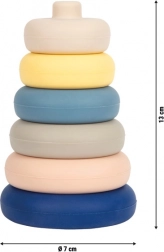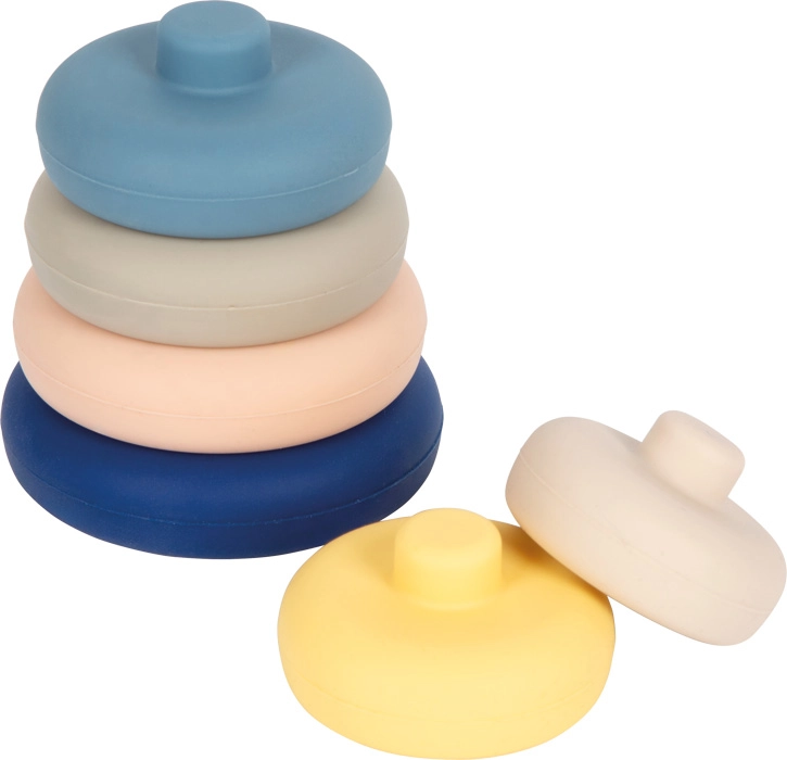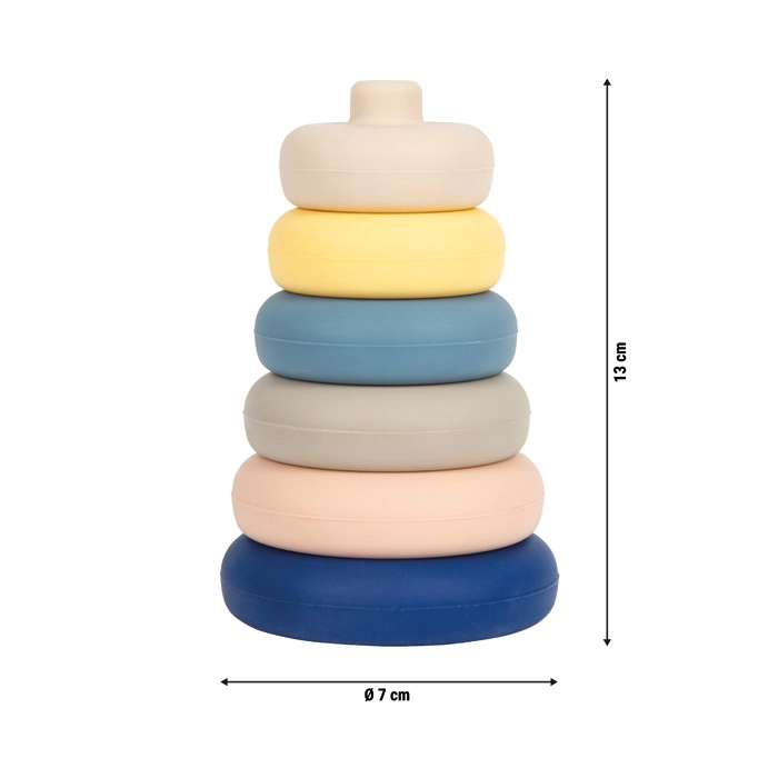 Versatile torre impilabile in silicone per bambini da 1 anno che offre gioco sicuro, divertente e sensoriale a casa, in vasca e nella sabbiera. Sei anelli morbidi in silicone alimentare senza BPA si impilano facilmente senza perno centrale, con superficie liscia e bordi arrotondati per la massima sicurezza. Favorisce la motricità fine, la coordinazione occhio–mano e la percezione di colori e dimensioni.