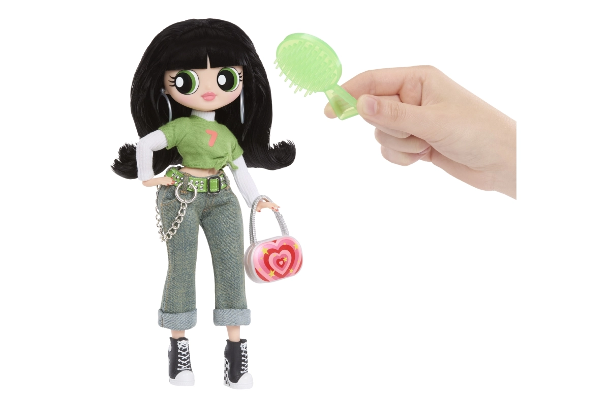 L’iconica Buttercup approda tra le L.O.L. OMG Sorellone con il suo audace stile verde ispirato alla serie Le Superchicche. Grazie alle articolazioni, la bambola è comodamente posabile e puoi esporla facilmente con il supporto incluso. I lunghi capelli si possono pettinare e acconciare con la spazzola in dotazione, mentre l’outfit dettagliato con accessori aggiunge una nuova dimensione al gioco.