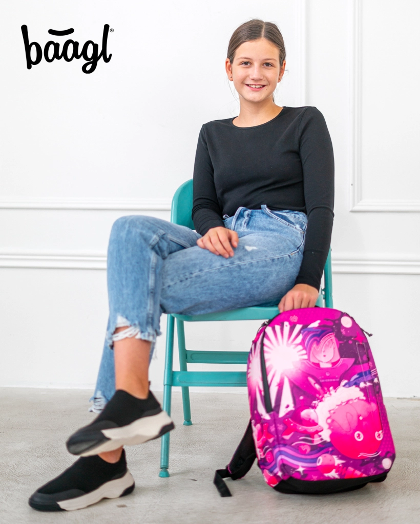 Scopri il leggero e resistente zaino BAAGL eARTh – Ufo by Mára Čmára, che combina un design spaziale accattivante con materiali sostenibili. Il tessuto impermeabile in fibre 100% riciclate protegge i tuoi oggetti con ogni condizione meteo, mentre lo schienale ergonomico e gli spallacci imbottiti e regolabili garantiscono comfort per tutto il giorno.