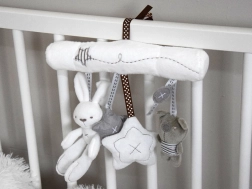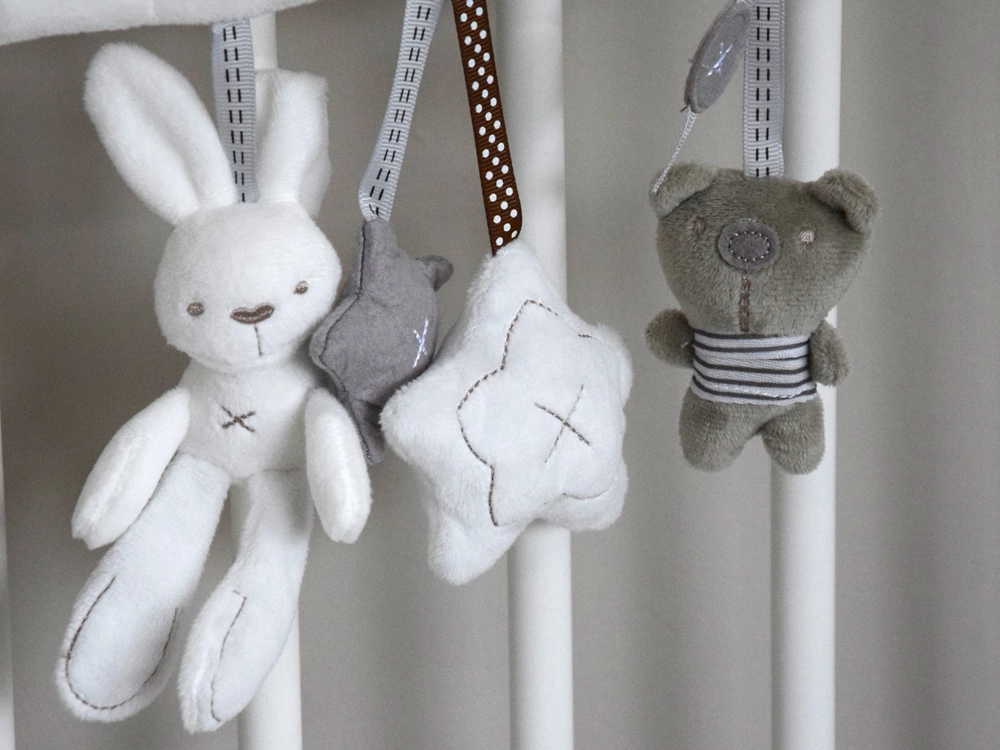 - 3 elementi appesi – coniglietto con melodia, stellina con fischietto, orsetto come sonaglino.