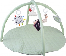 Questo tappeto gioco rotondo, delicatamente imbottito e in tonalità menta pastello, crea uno spazio sicuro e confortevole per le scoperte quotidiane. I due archi flessibili con sgancio rapido permettono una manutenzione veloce e una piega compatta per i viaggi. Texture diverse, elementi fruscianti e motivi a contrasto stimolano naturalmente vista, udito e tatto, mentre i giochi sospesi invogliano ad allungarsi, scalciare e girarsi.