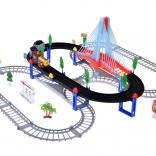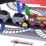 La locomotiva a vapore traina vagoni carboniferi, emette suoni del motore e riproduce melodie allegre. I bambini apprezzeranno una guida autentica su un tracciato a più livelli.