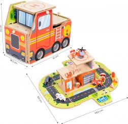 Dopo il gioco, la stazione si richiude facilmente trasformandosi in un camion dei pompieri. Facile da riporre, trasportare e per mantenere in ordine la cameretta.