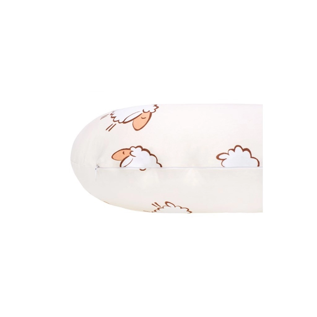 Il pratico cuscino da allattamento New Baby con motivo di pecore in colore beige assicura un comodo posizionamento del neonato durante l'allattamento e un alleggerimento per la schiena della mamma. Grazie alla fodera rimovibile è facile da mantenere, è morbido al tatto ed è realizzato in cotone 100% traspirante con imbottitura in poliestere soffice.