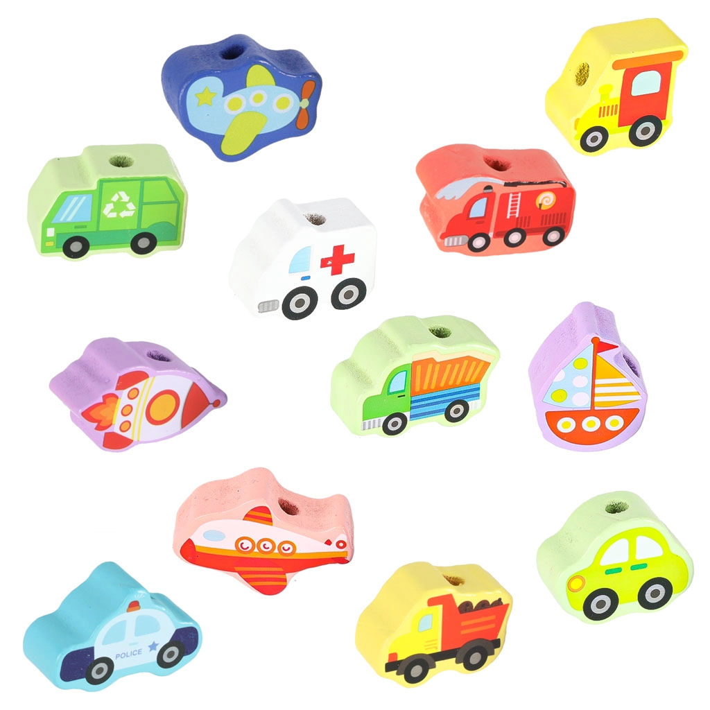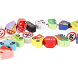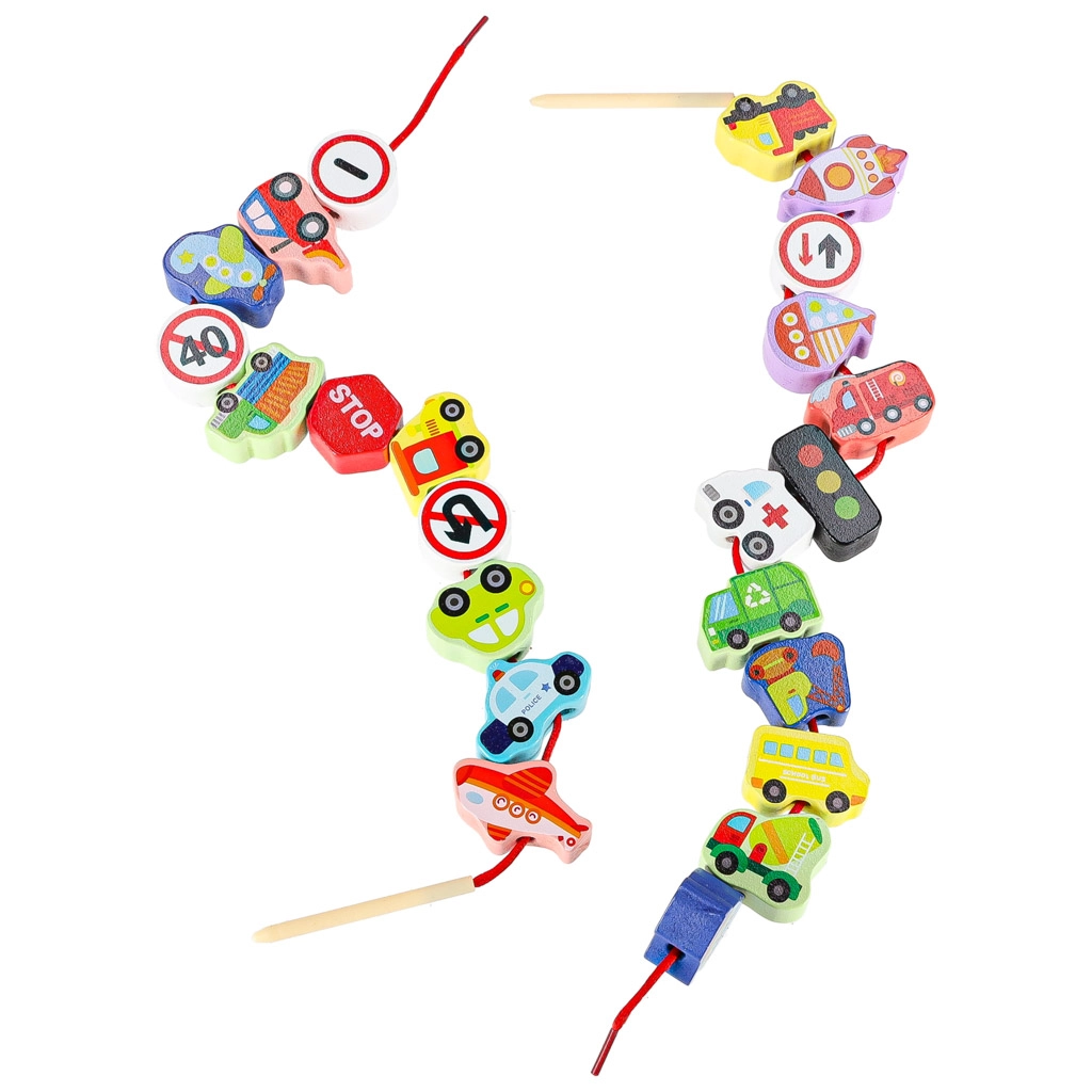 Questo set da infilare a tema circolazione stradale aiuta i bambini a familiarizzare con le basi delle regole su strada e allo stesso tempo sviluppa abilità attraverso il gioco. Le forme varie (auto, autobus, ambulanza, camion dei pompieri o camion, semafori, segnali) invitano alla creatività e stimolano la fantasia. Grazie alla realizzazione in legno con superficie liscia, le perline si impugnano facilmente e si infilano con comodità.