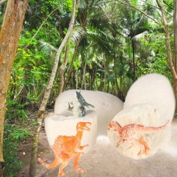 Ogni uovo in gesso nasconde una mini figurina colorata di un dinosauro diverso. I bambini vivranno dodici avventure individuali e creeranno la propria collezione.