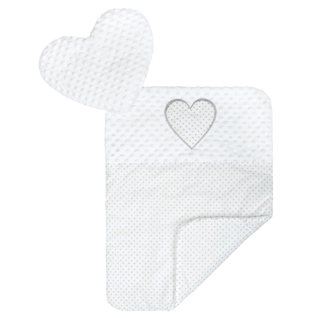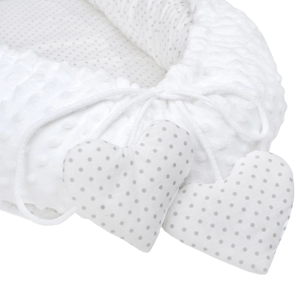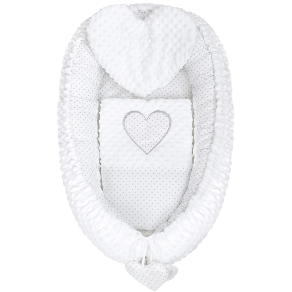 Lussuoso nido per bambini con cuscinetto e piumino New Baby Minky Cuoricino bianco
