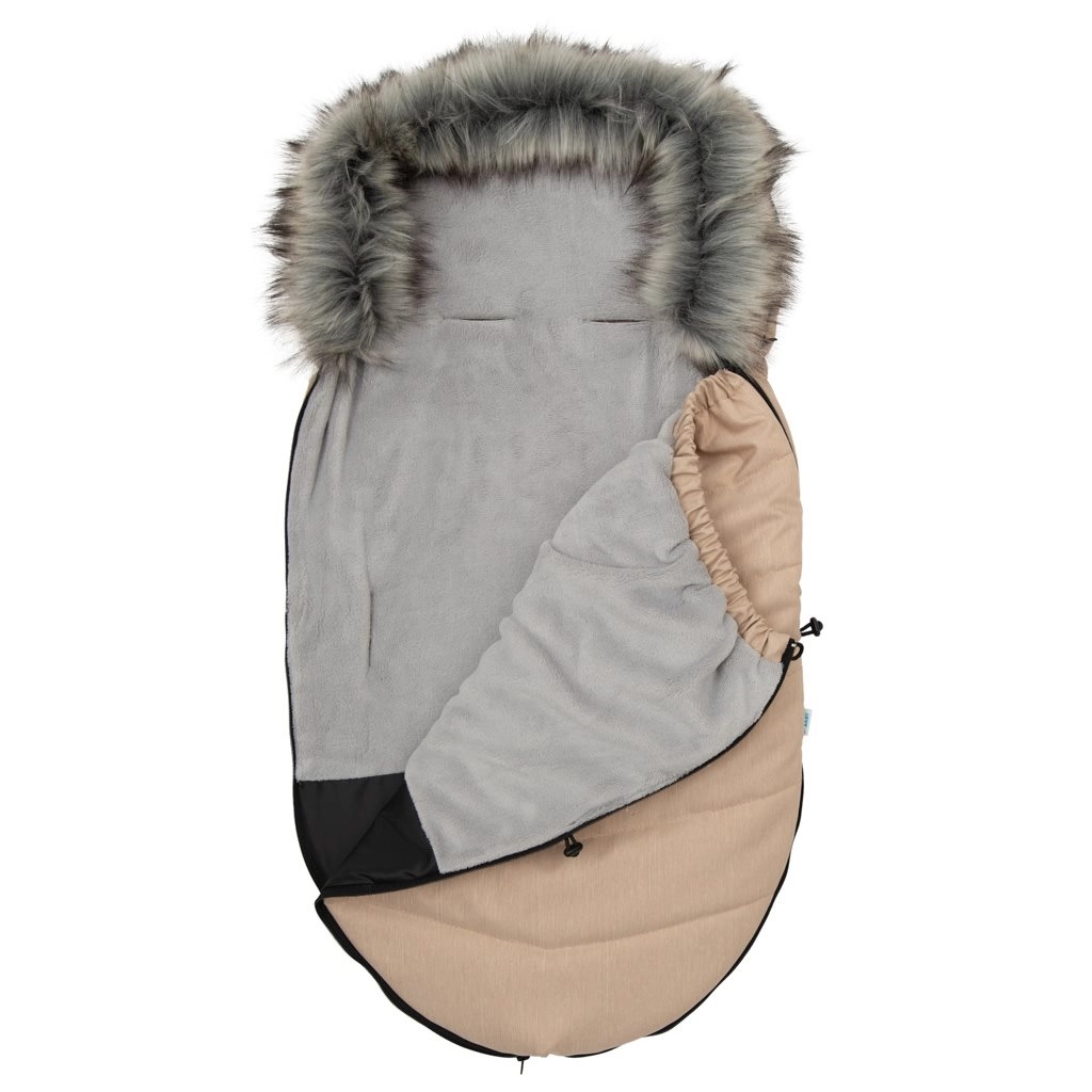 Grazie alle aperture universali multipunto per le cinture di sicurezza, il sacco è compatibile con la maggior parte dei marchi di passeggini (ad es. ELODIE, X-LANDER, CYBEX, JOIE, VALCO BABY, BEBETTO, MUTSY, GB, GREENTOM, ANEX, QUINNY, MAXI COSI, BUGABOO, GRACO, MACLAREN, CHICCO ecc.). La parte superiore può essere staccata trasformando il sacco in una calda imbottitura per passeggino. Adatto a passeggini navicella e sportivi, seggiolini auto più grandi e slitte.