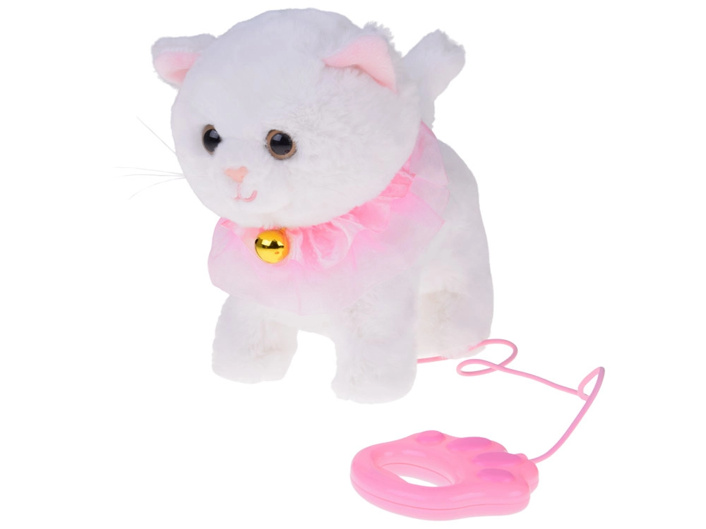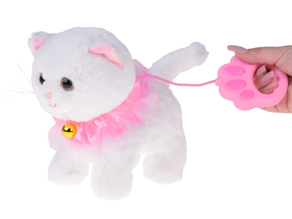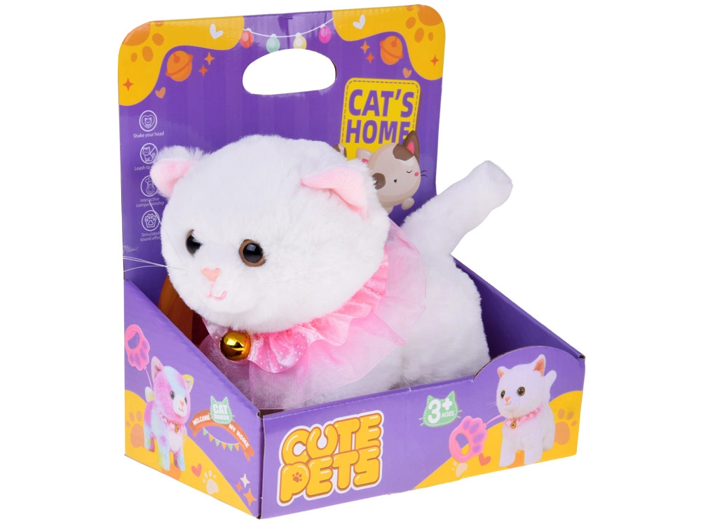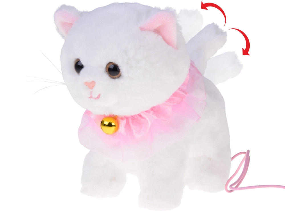 Il dolce gattino interattivo farà felice ogni piccolo amante degli animali. Premendo il pulsante sul guinzaglio si mette a camminare, miagola, emette suoni realistici e muove la coda. È realizzato in materiale morbido e piacevole al tatto, ha dettagli adorabili ed è ideale per giochi di passeggiata e di cura del proprio animaletto.