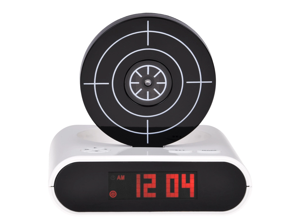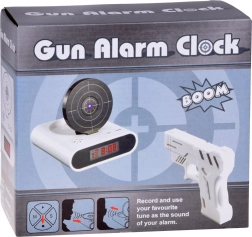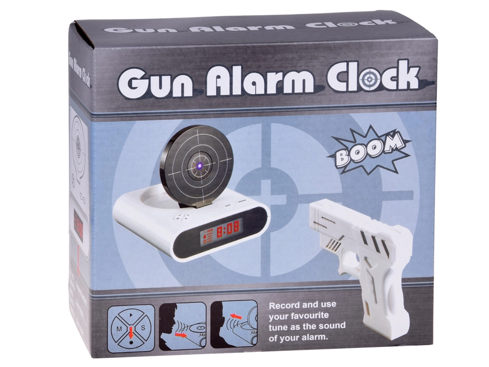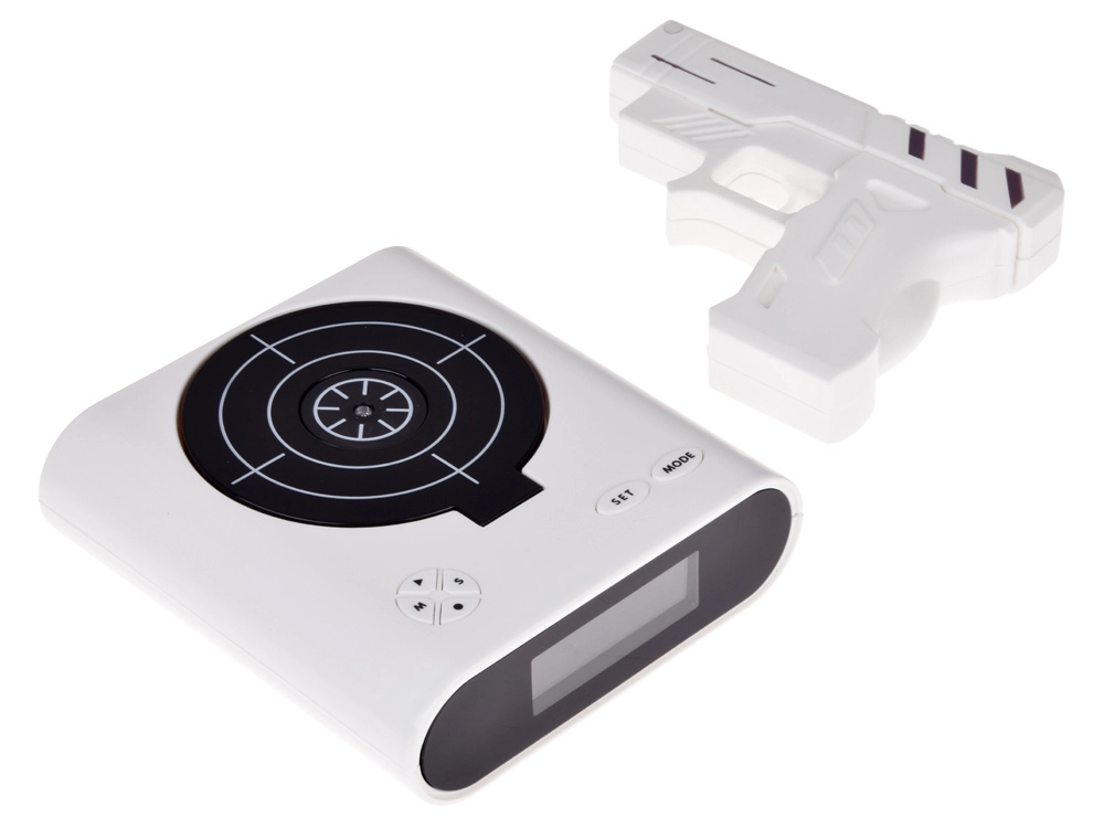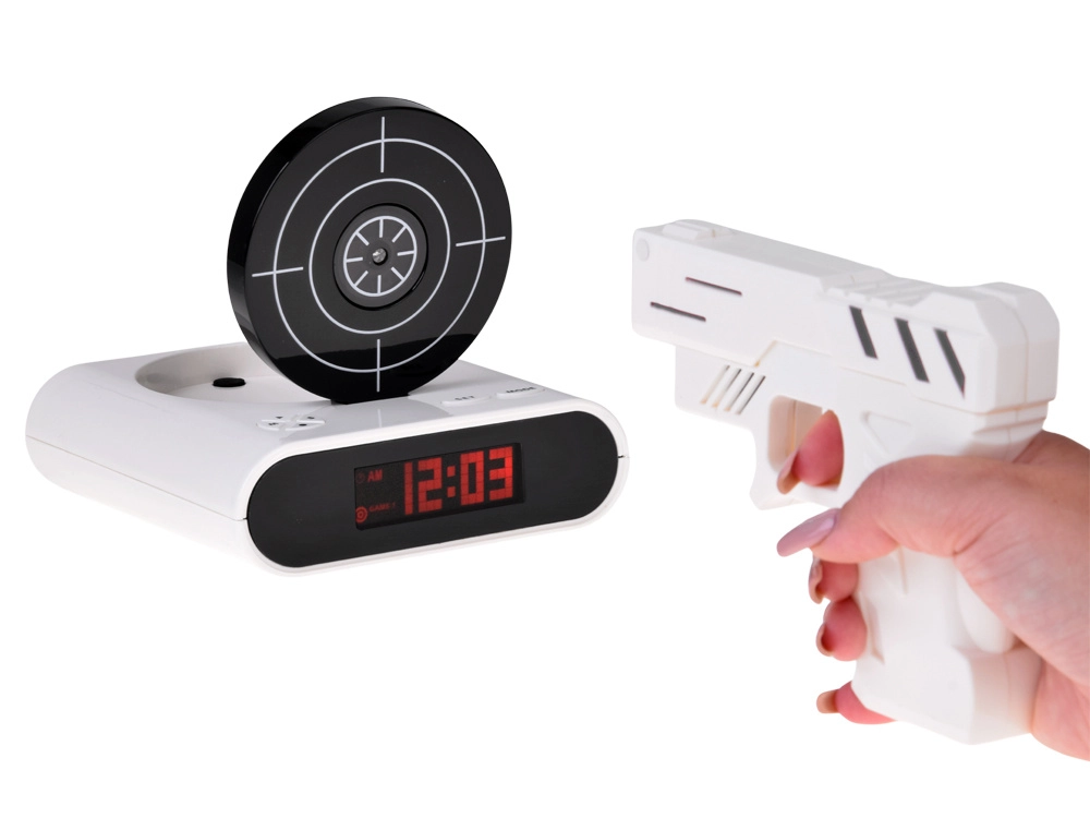 Rendi il risveglio più piacevole con una sveglia originale che zittisci puntando al bersaglio e premendo il grilletto. Questa divertente sveglia offre tiro al bersaglio con pistola a infrarossi, possibilità di registrare il tuo suono di allarme e 2 modalità di gioco. Grazie al display LCD ben leggibile e all’alimentazione a batterie o micro USB è ideale per camera da letto, ufficio e come regalo originale.